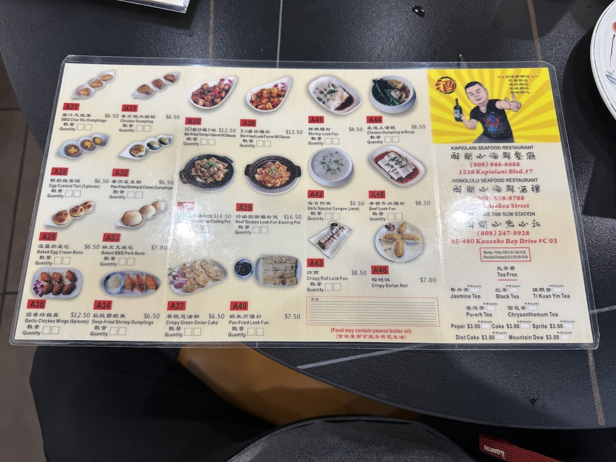 Kapiolani Seafood Restaurant offers a menu that balances traditional seafood and comforting dim sum favorites in a relaxed setting. The selection includes casual bites like shrimp dumpling har gow and scallion pancakes alongside hearty dishes such as Dungeness crab and beef chow fun. These options create a welcoming space for gatherings, whether it’s a leisurely lunch or a shared dinner with family and friends.